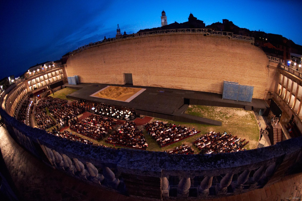 Opera soirée at Sferisterio in “poltronissima” (first rows). Overnight at the Hotel.
