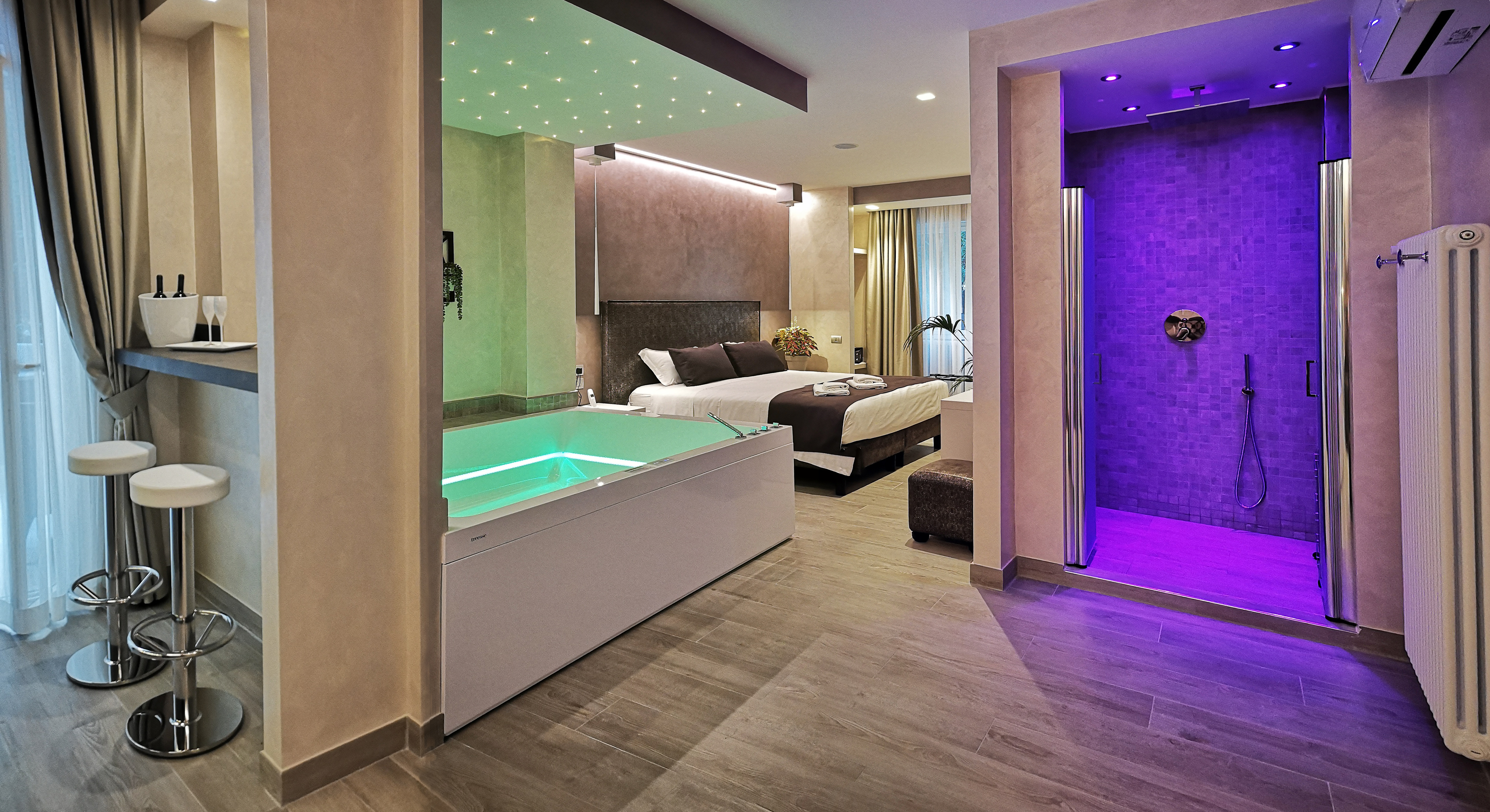 An intimate and private space will immerse guests in a sensory journey: soft lights, piped music, the bubbles of the whirlpool, infusions and teas to create a pleasant atmosphere. This metropolitan apartment is the perfect choice for honeymoons and every other romantic stay!