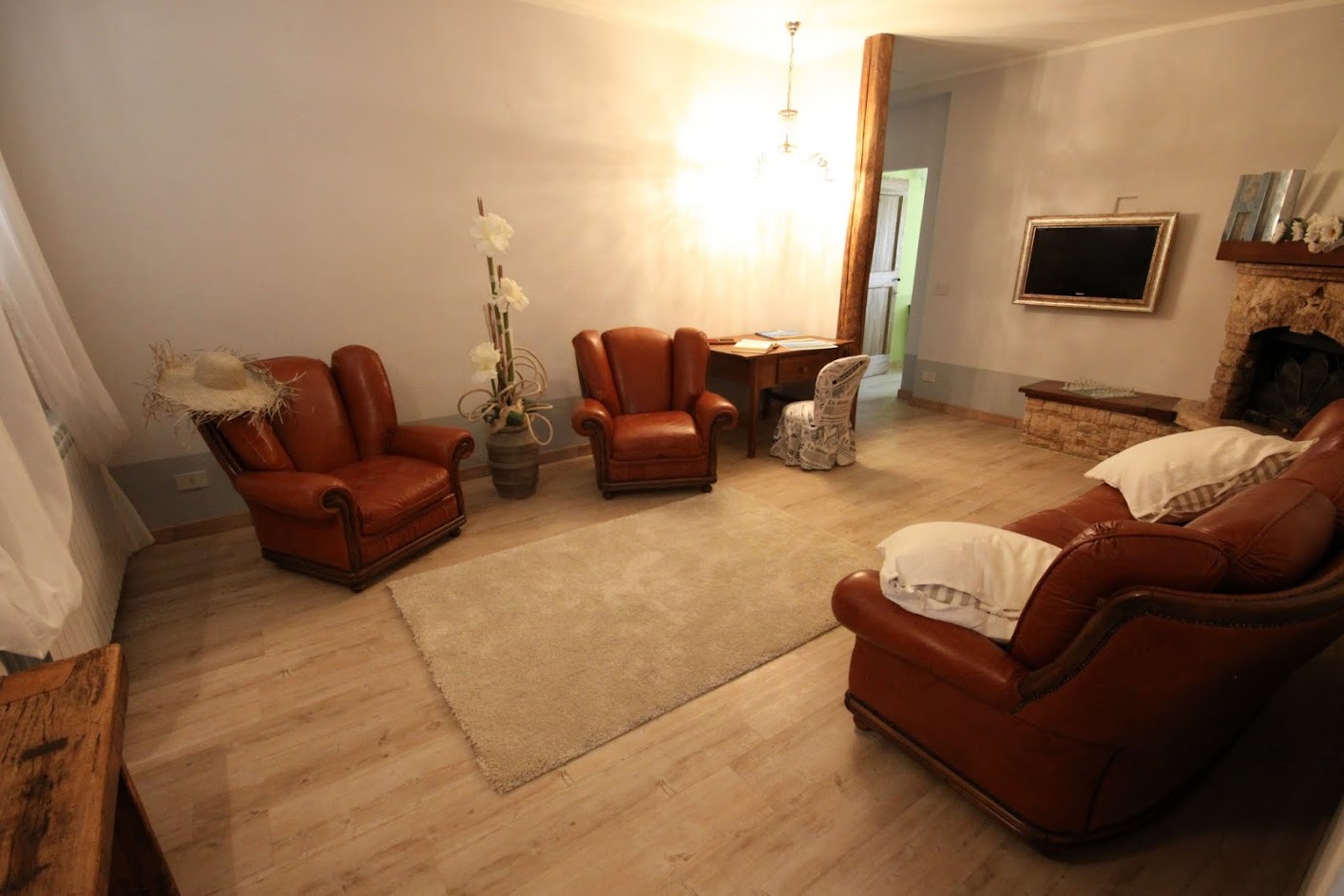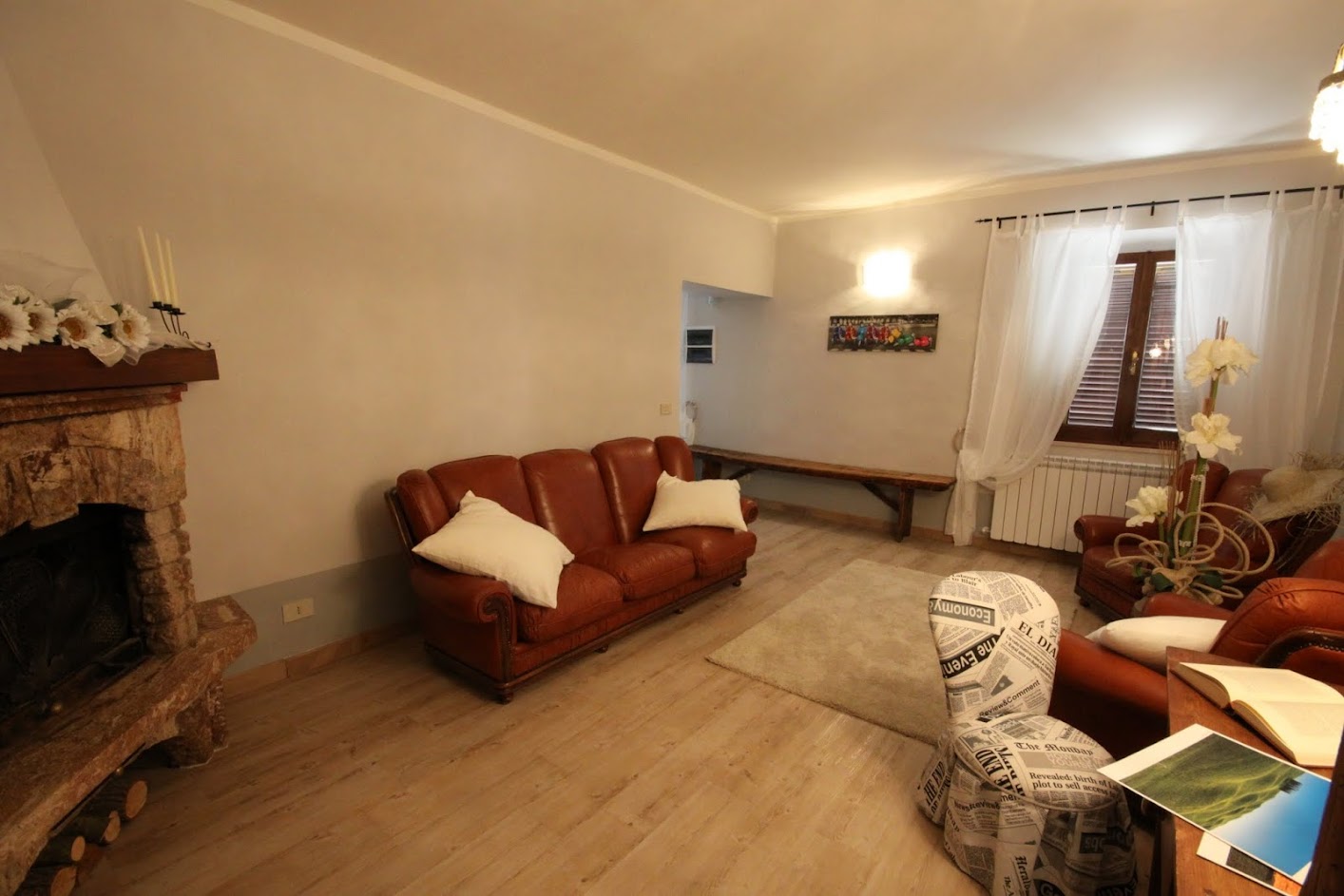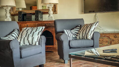 The ancient external walls are made of local stone contrasting with the charme of the interior: there the modern and the practical furniture sets side by side with antique and family heirlooms.