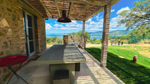 Outside there is a large flowery garden with sunny and shady areas. There is even an arbor and under it a travertine table to eat in the open air. There is a barbecue to roast meat, a sofa and the armchairs. Under the shade of an old tree, there is a stone bench.