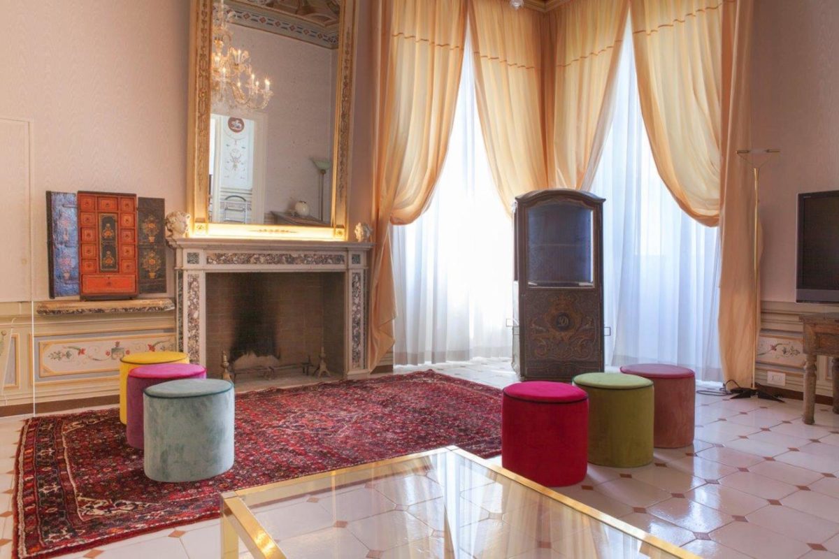 NOBLE FLOOR: on the second floor of the Palazzo, after walking through the big marble staircase, one of the most beautiful and noble building of the whole region opens its doors to the lucky guests. The restored portion of the Noble Floor is impressive for both its prestigious beauty and remarkable size. The entire 500 SQM apartment also consists of 2 single bedrooms, 1 double bedroom and a modern kitchen and two bathrooms. There is also a private Loggia that overlooks one of the palace’s internal courtyards. It accommodates 4 guests (2 more people can be accommodated in the Pensatoio with a private bathroom).