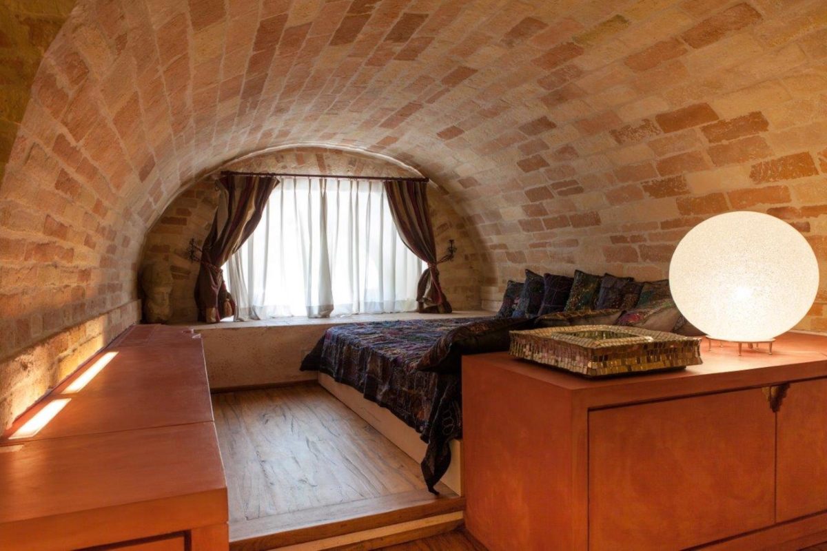 GIACOMINO WORKSHOP: what originally was the keeper’s house, evokes now an ancient atmosphere, different than any other place at Palazzo, as it is bizarre and rigorous at the same time. It is a spacious and heartwarming suite, and its amazing ceiling is characterized by cross vaults which outstandingly intersect and virtually limit each area. Giacomino’s workshop is a sequence of rooms and large niches where we find a contemporary kitchen, a living room, 1 open bedroom (bed 160 x 200 cm.), 1 double bedroom (bed 155 x 200 cm.) and a bathroom. It accommodates 4 guests.