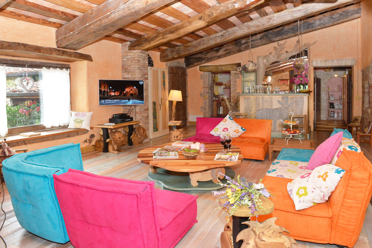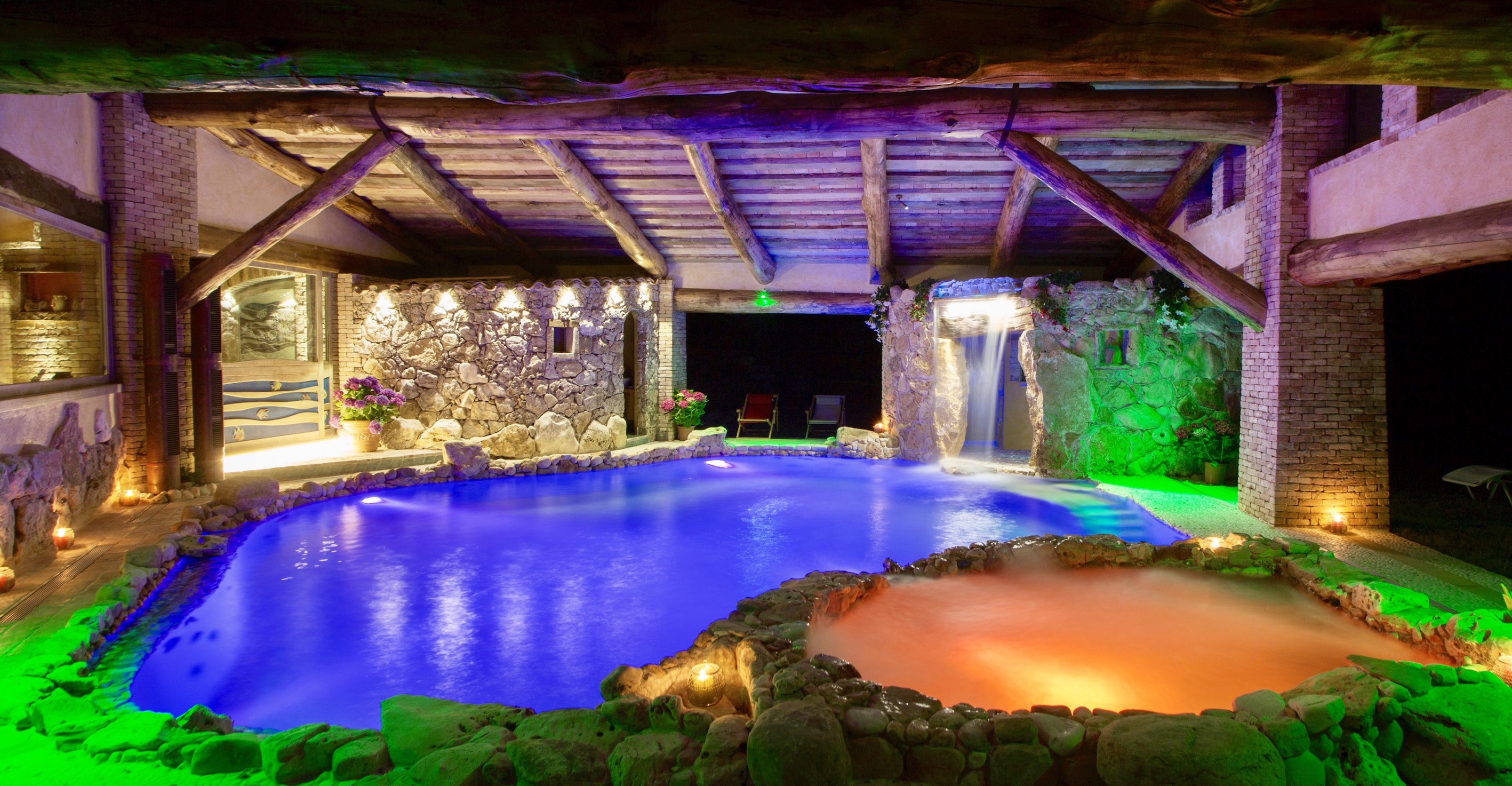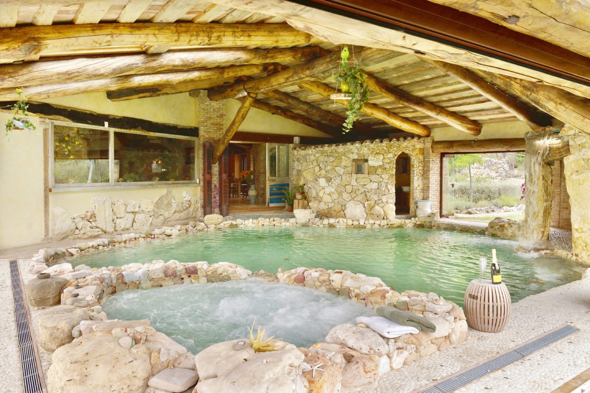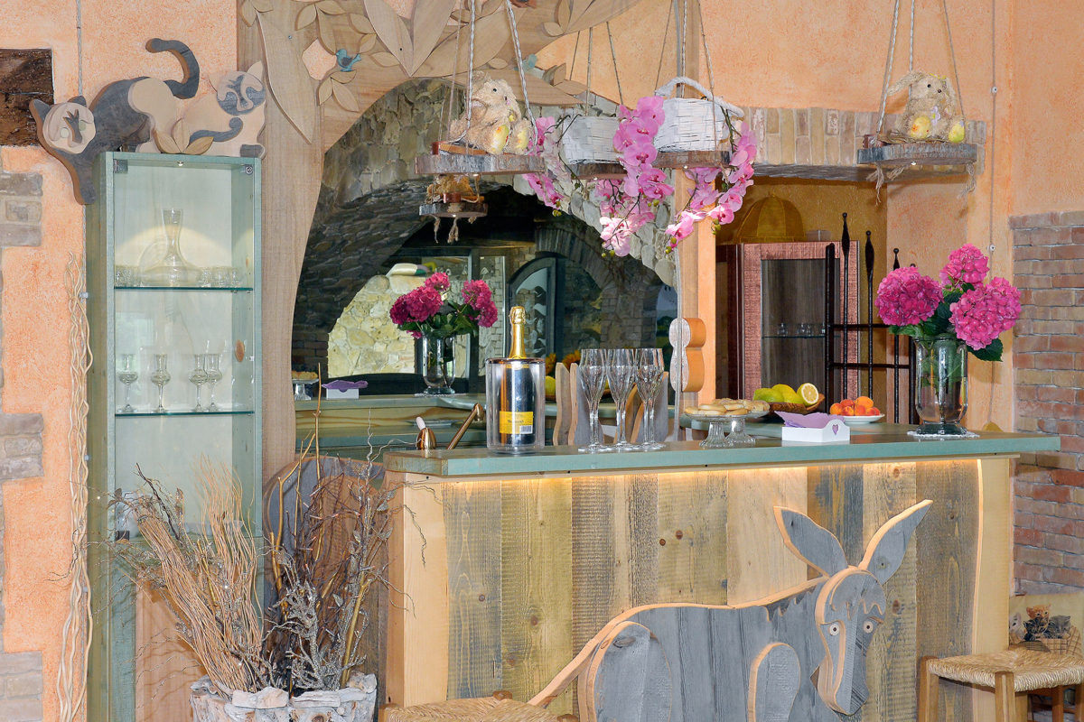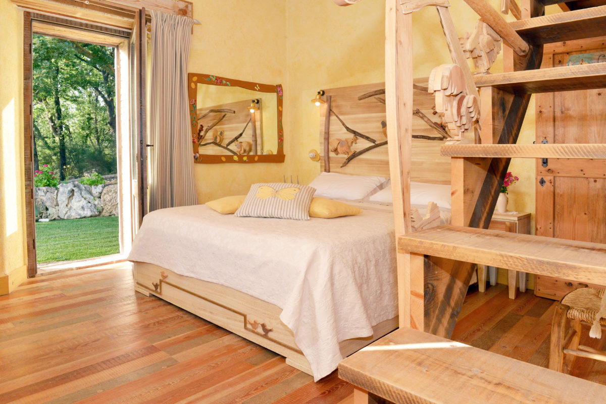 Lovingly adorned with wood carvings, from the donkey on the wooden gate, to the myriad of animal carvings within the villa, this villa is unique. It is located within a large park of about 25 acres, in a panoramic position overlooking the Tiber River and the Alviano Oasis. The surrounding park is covered in trees, plants, flowers, and has many resident deer, goats, and donkeys. A landscaped garden around the villa has multiple areas for lounging and dining al fresco. The villa’s swimming pool and spa services are located indoors, but with sliding doors that open fully to the outside. The facilities include a heated, salt water swimming pool, a heated Hydromassage Jacuzzi SPA tub, a spa with a tropical shower and Turkish bath, and a bathroom.