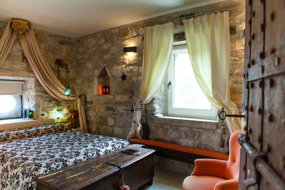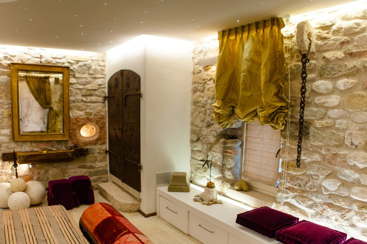 It was in a dignified but deteriorated state, completely abandoned, bound by moss, lichens, thorns, and shrouded in mystery. It was a sudden, strong, intense and emotional love. Since the very beginning, they decided to restore it to its original beauty and grandeur: no more as a strategic post, but as a haven for mind and body, a place to “find oneself” and meditate, …to “find oneself” and meet up with friends.