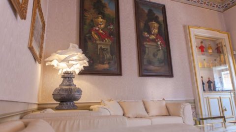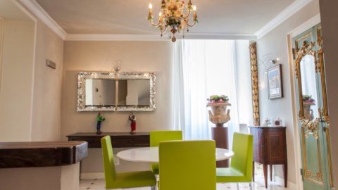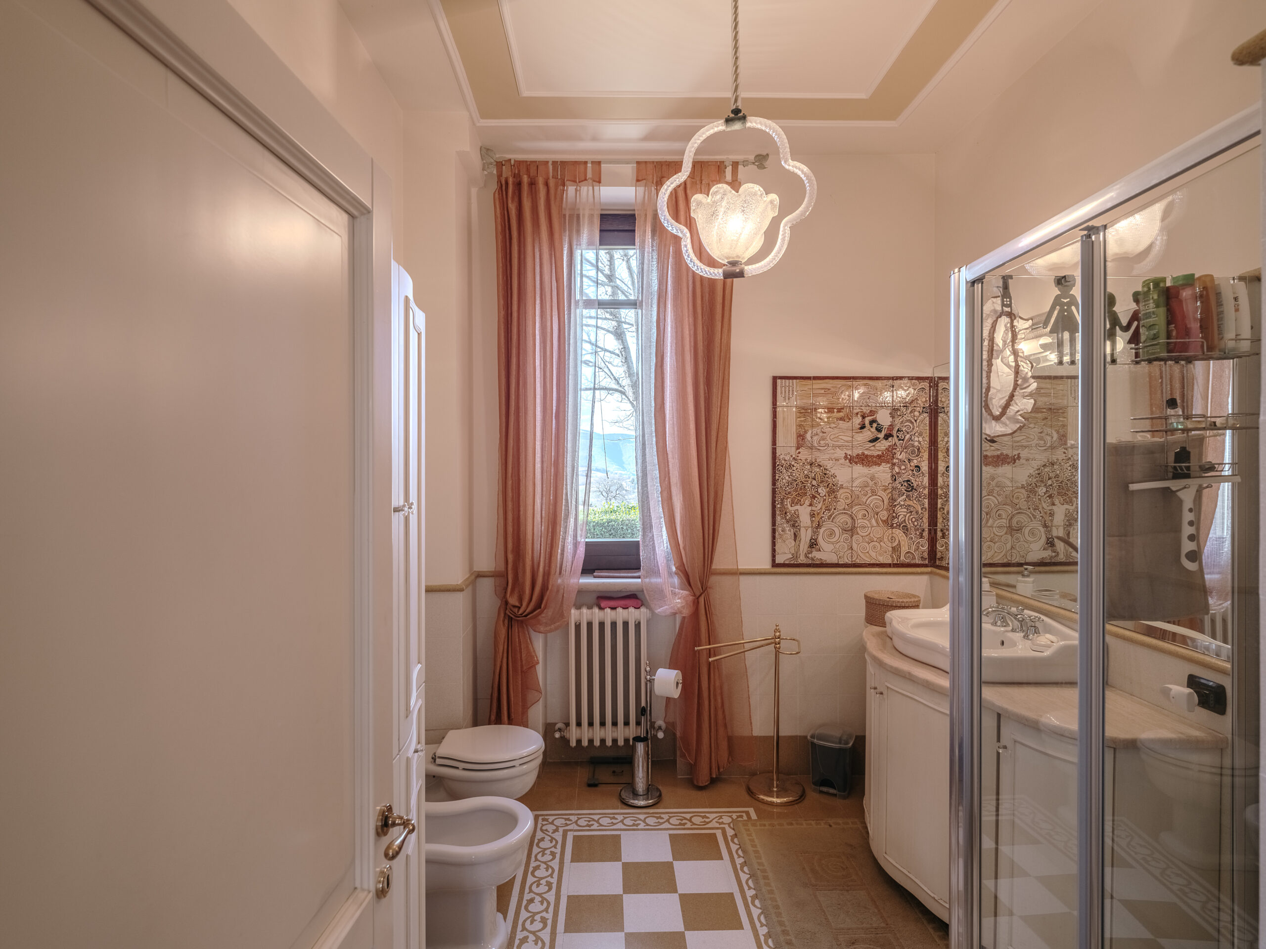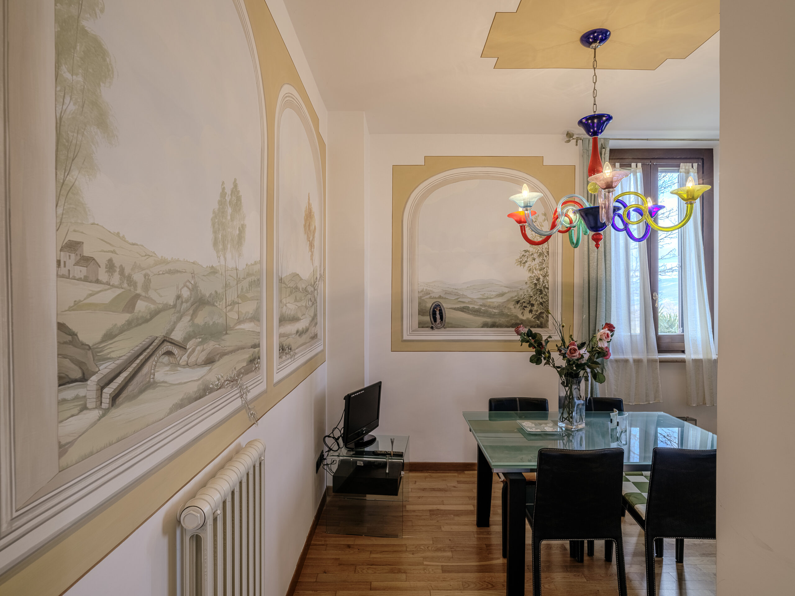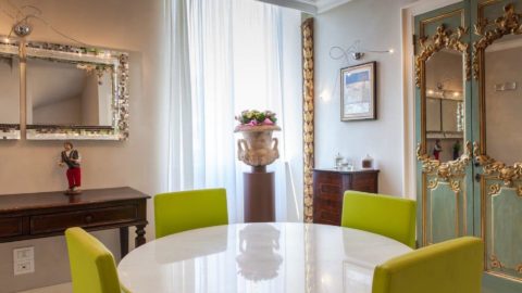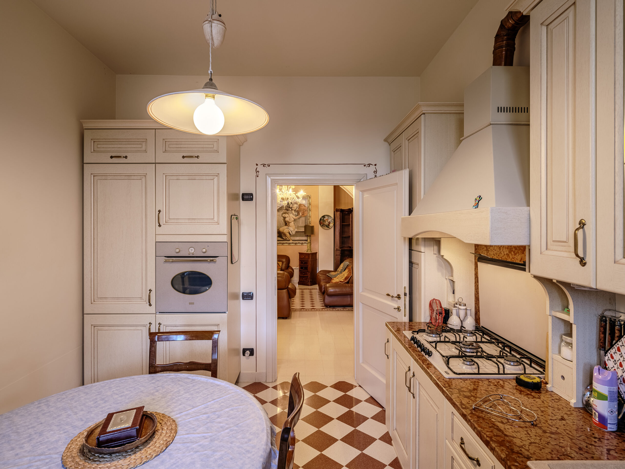 - FIRST FLOOR: two double bedrooms. Splendid living room with luxury Poltrone Frau classic style sofas, large space with extendable dining table, kitchen room with round table, microwave, electric oven, dish washer, coffee machine, hob. Double bedroom and bathroom with hydromassage shower totally equipped.