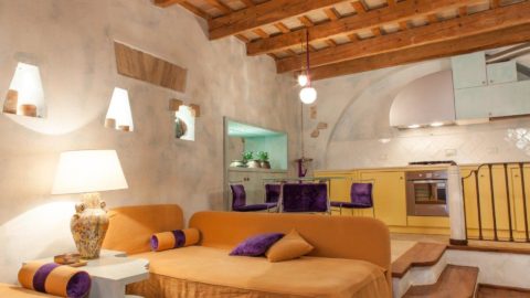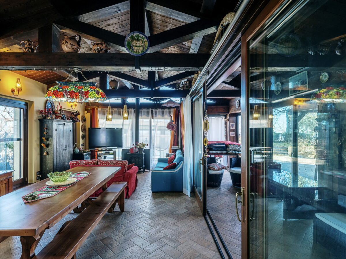 - RUSTIC-CHIC STYLE DEPENDANCE: double bedroom, large living room with kitchenette totally equipped, large dining table and double sofa-bed, bathroom with hydromassage shower. The dependance is conveniently connected to the central building through an iron and glass corridor.