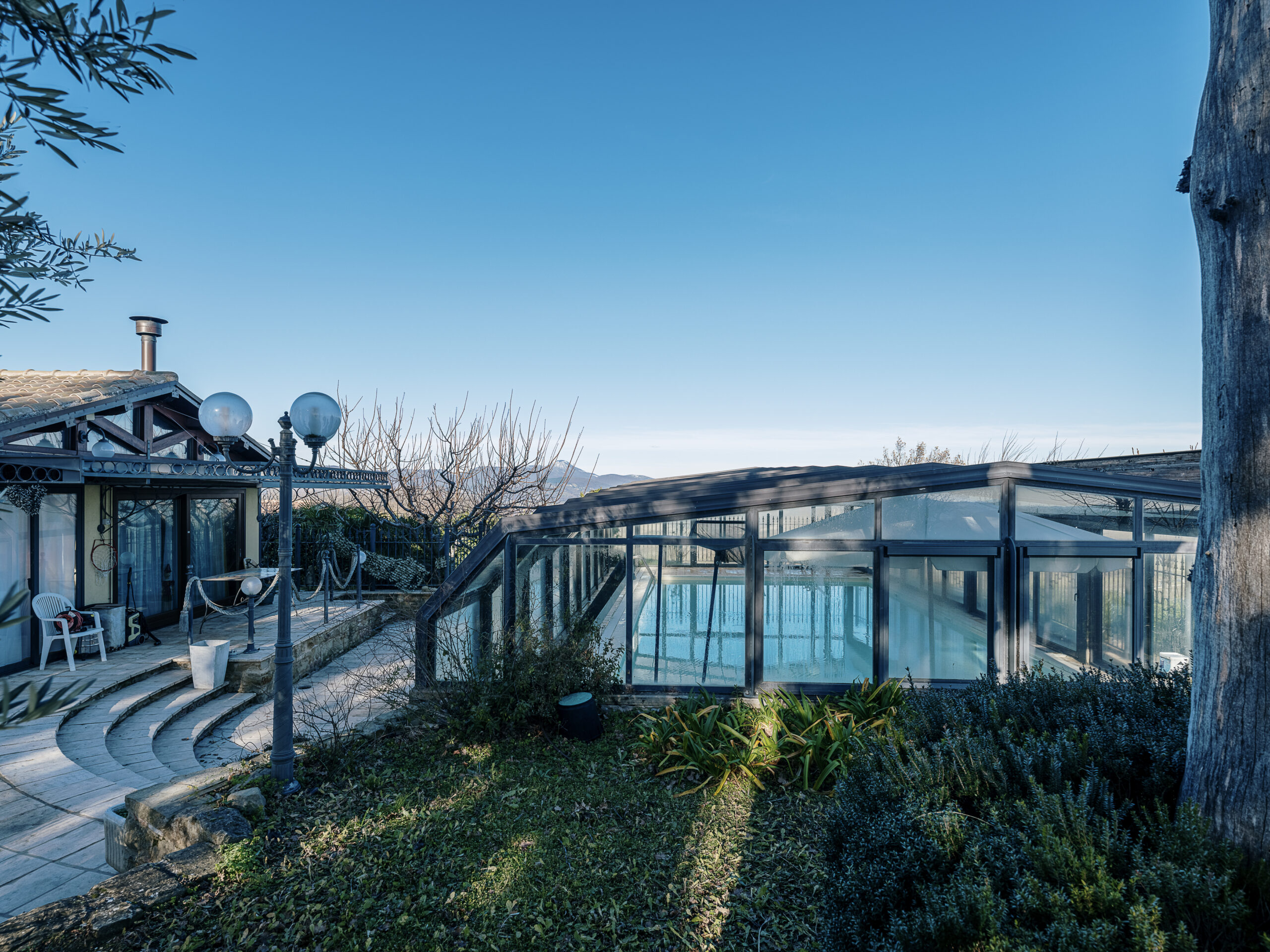 Equipped with large internal and external spaces, includes a dépendance connected to the main villa, covered large pool, fitness room and exclusive services.