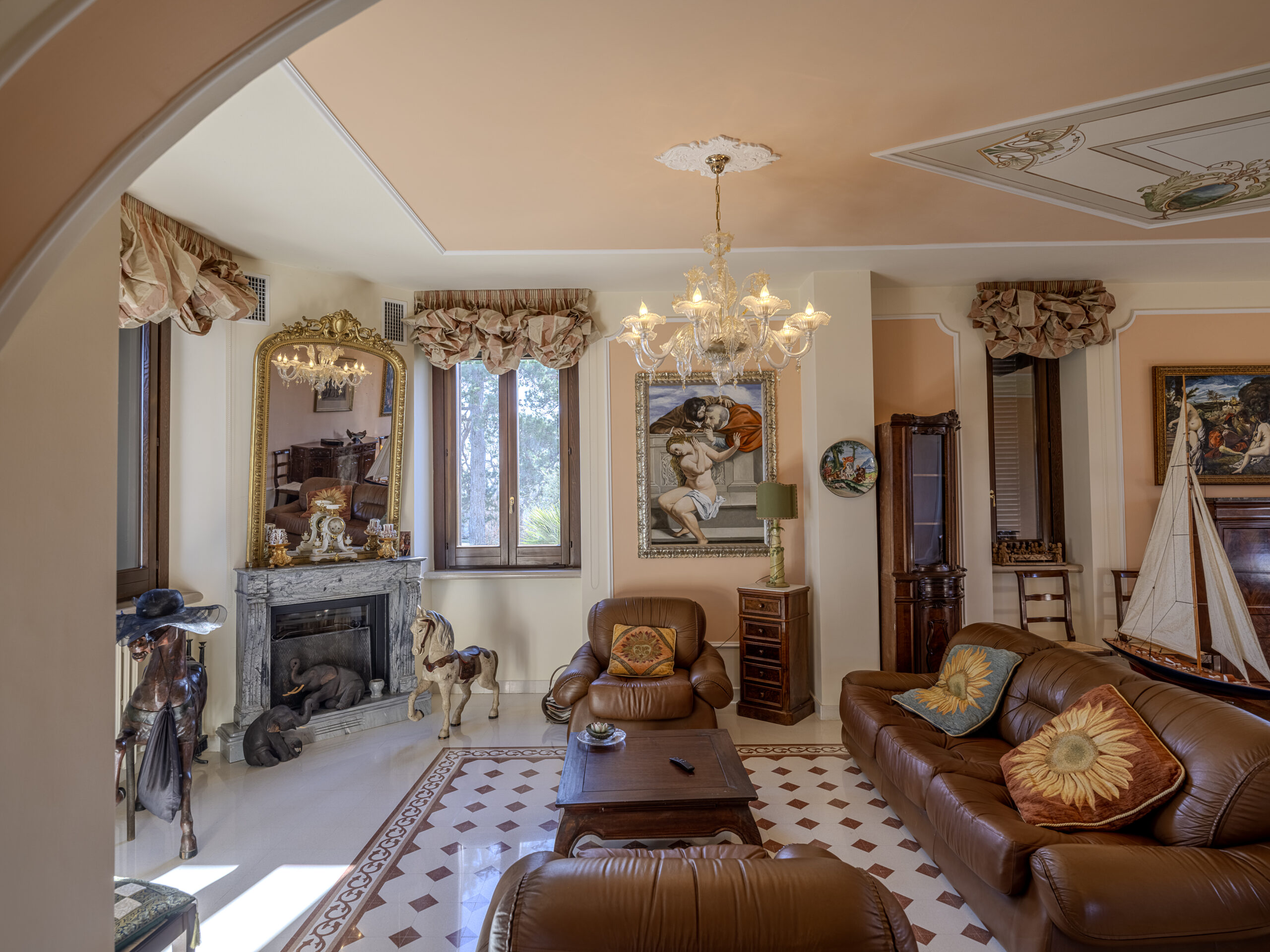 With its private fenced park of di 3.800 sqm, this Villa offers refined ambiences with a mix of contemporary design & ancient peaces of furnitures.