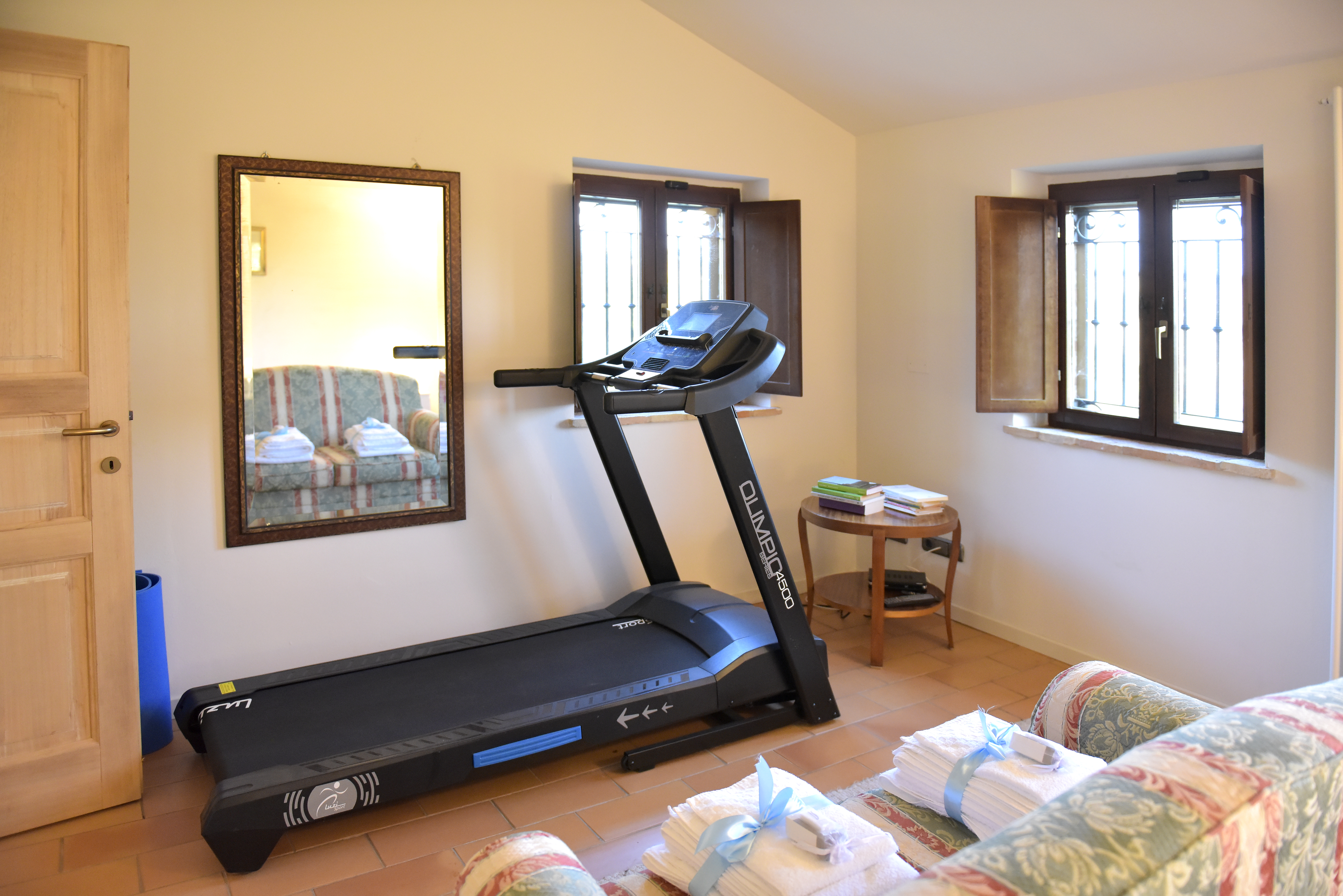 A studio with second double bed with air conditioning and gym equipment complete this separated ambiance.