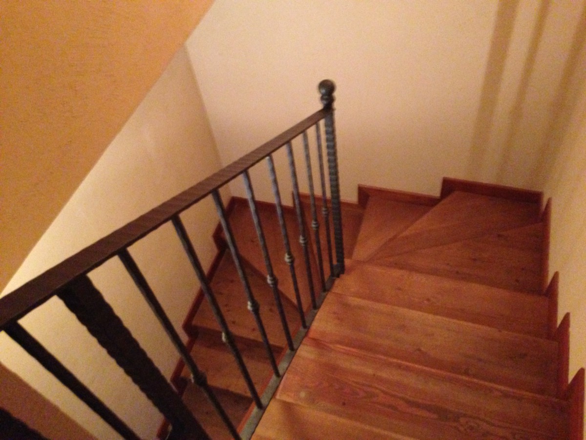 At the ground floor there’s a hall with stone fireplace, kitchen, 1 bathroom, storage room and 2 large terraces.