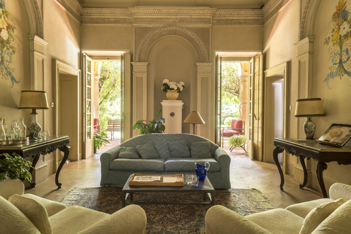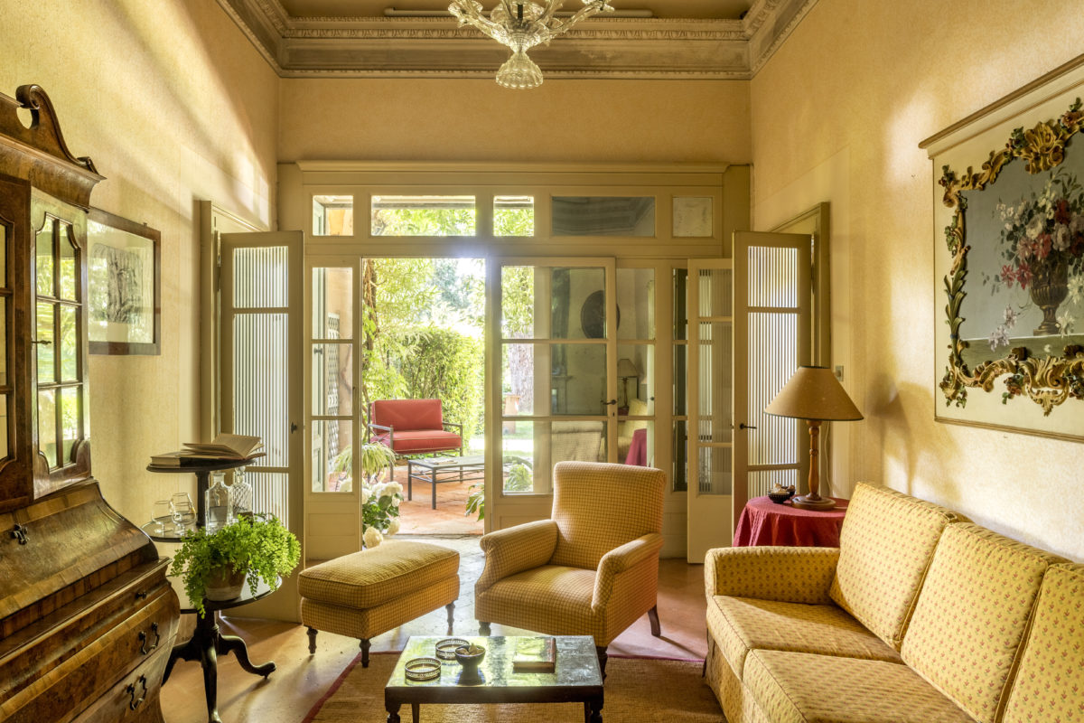 The large garden contains fine old trees and a lovely pool with an electric cover to ensure safety when small children are around. Next to the pool is the annex with changing-room and bathroom.