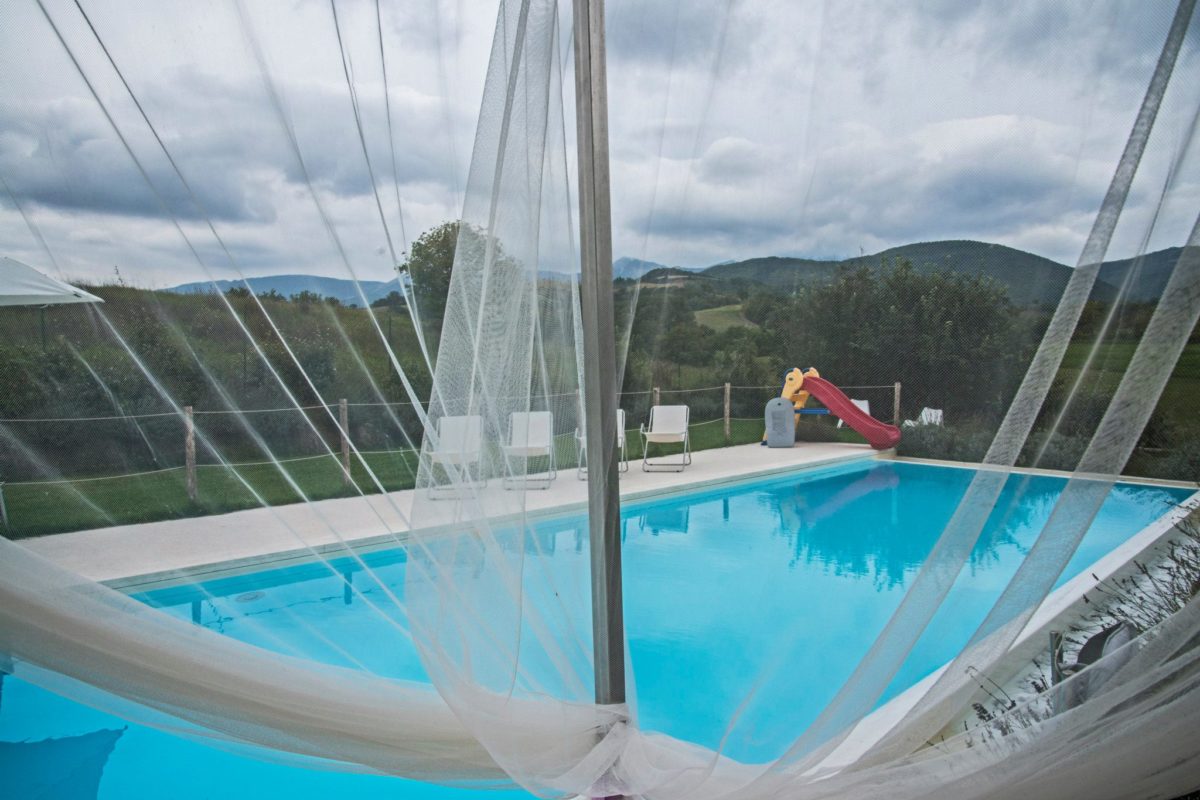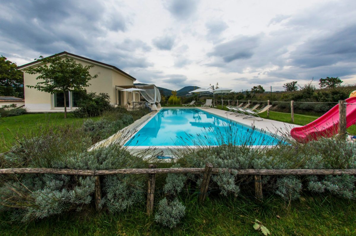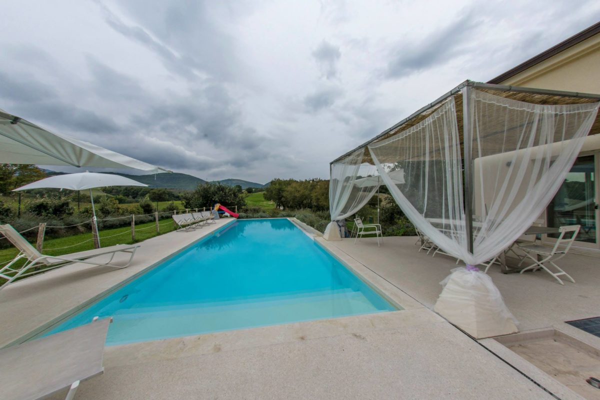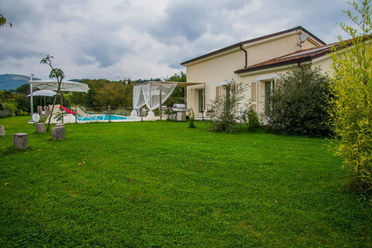 Placed just 5 km from Umbria, the villa with swimming pool is the result of the fantastic restructuring of an old rural building. Quiet and panoramic views are important elements of this villa.