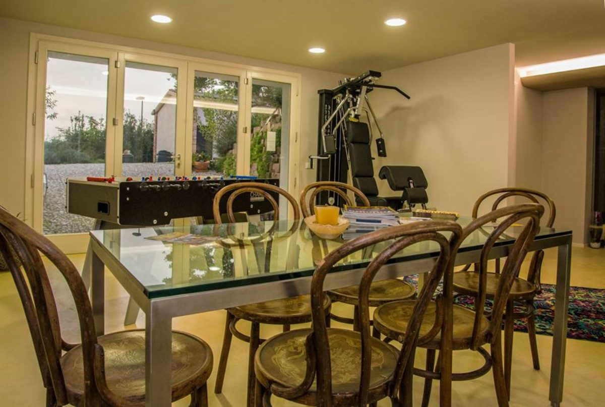 The basement floor is composed by an elegant Wellness Area with Jacuzzi, Finnish sauna and Technogym fitness area. The spa has limited access to specific time. This area is equipped also with table football and dining table with 6 seats.