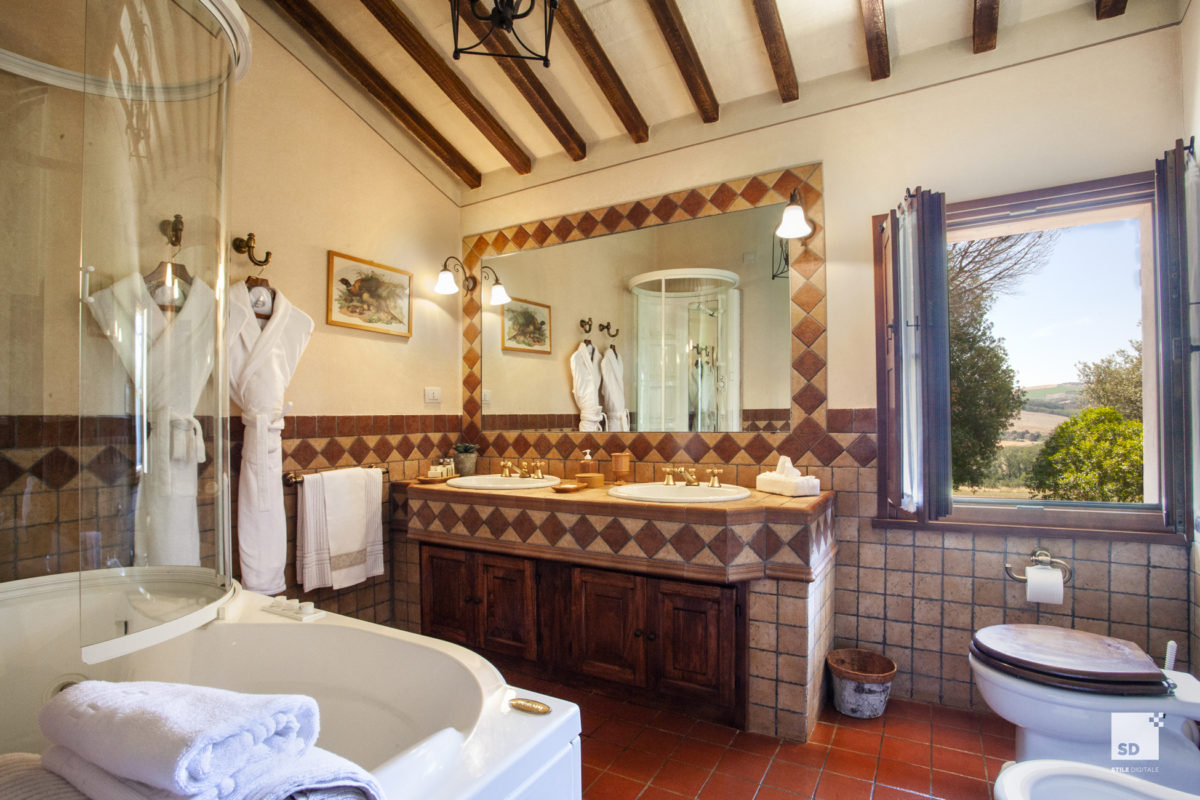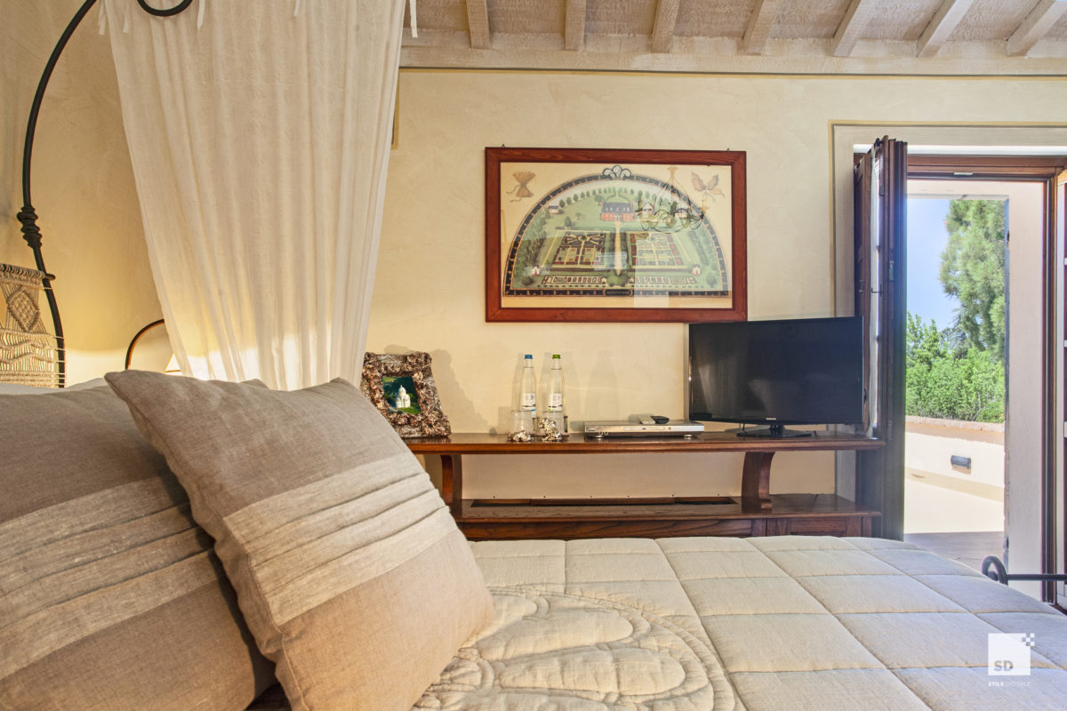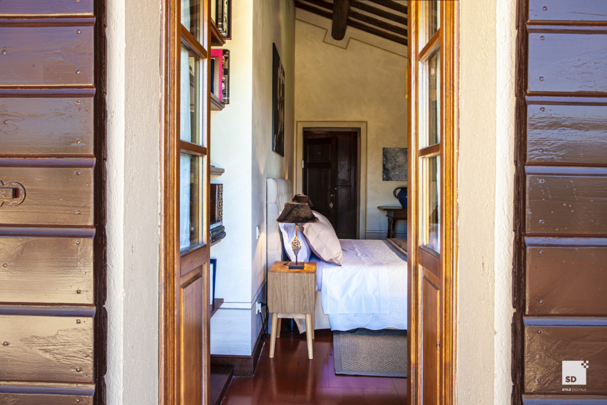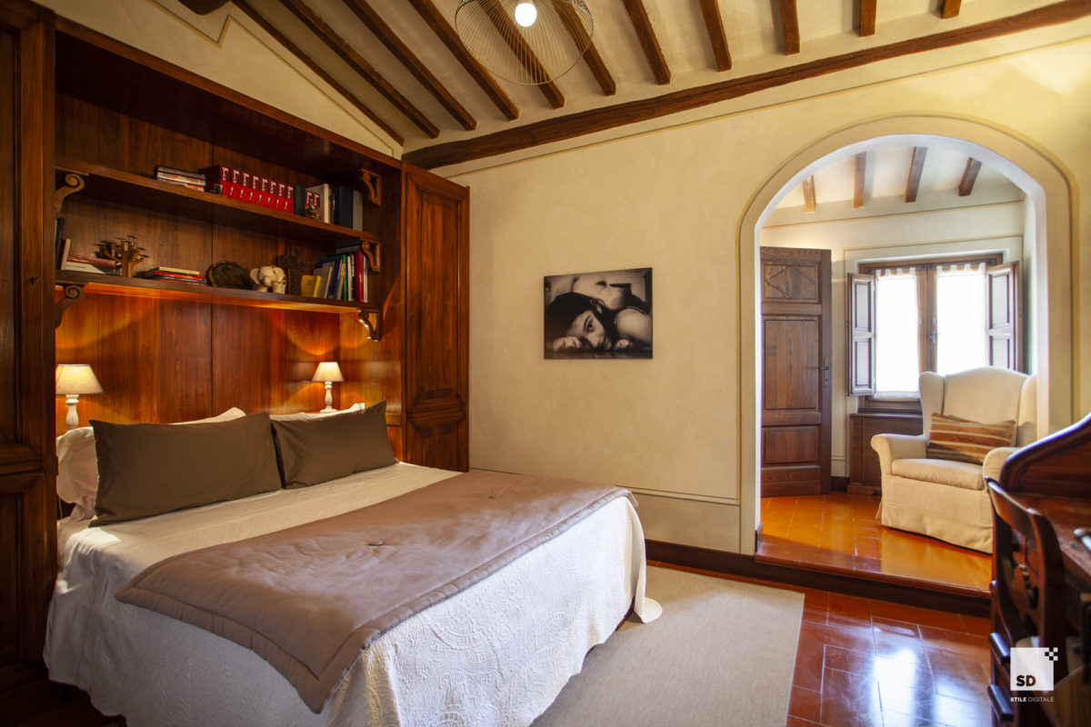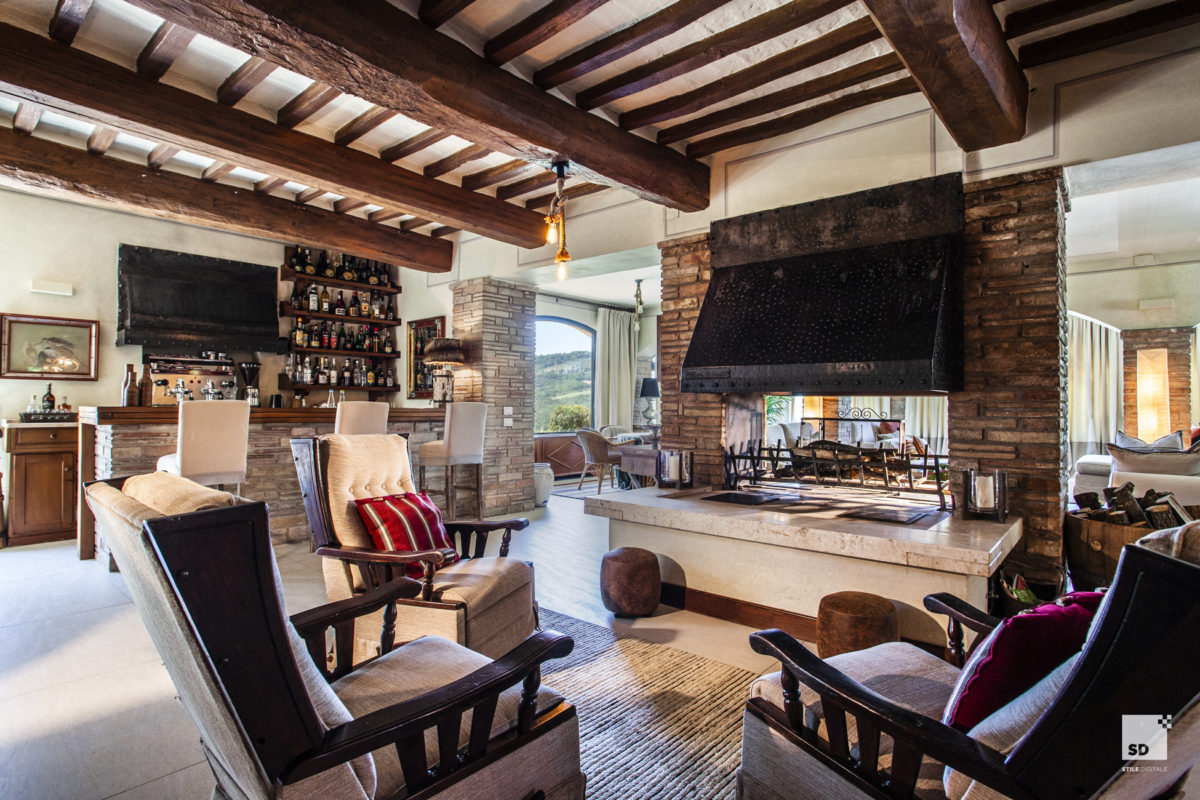 It ‘s composed by 4 deluxe double bedrooms provided with every comfort, private services – some of them with Jacuzzi bath tub/shower – wide panoramic hall with bar, fireplace, kitchen, basement room and gym.