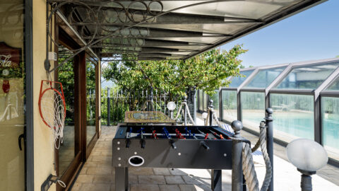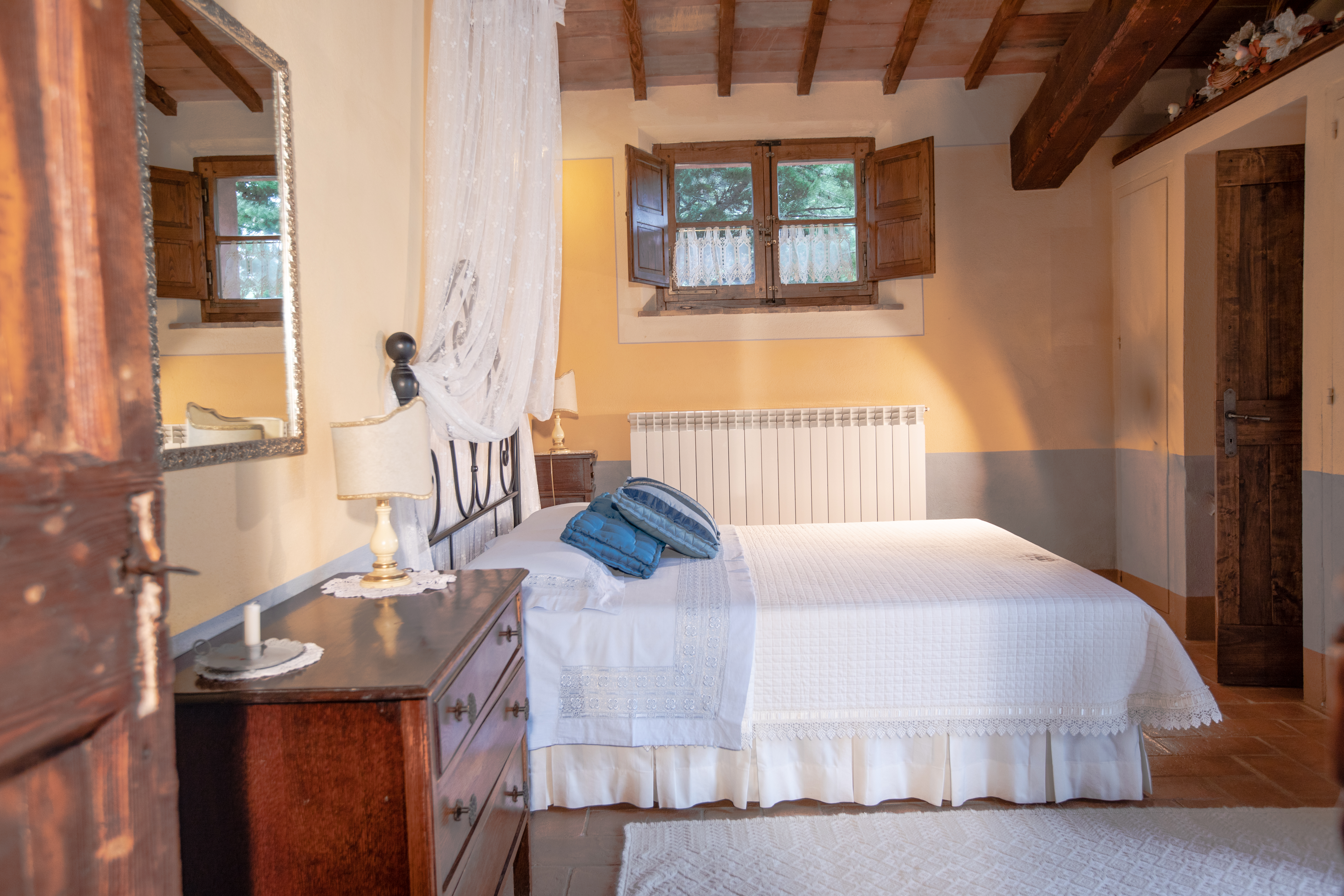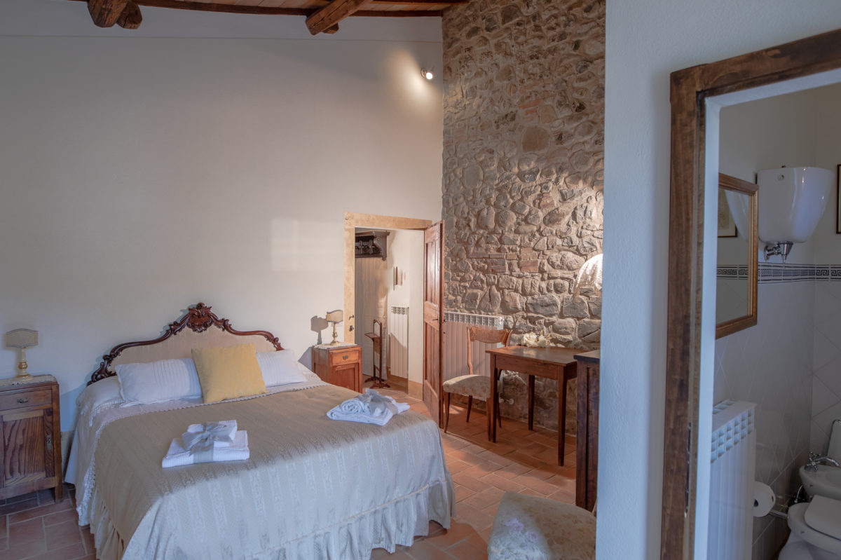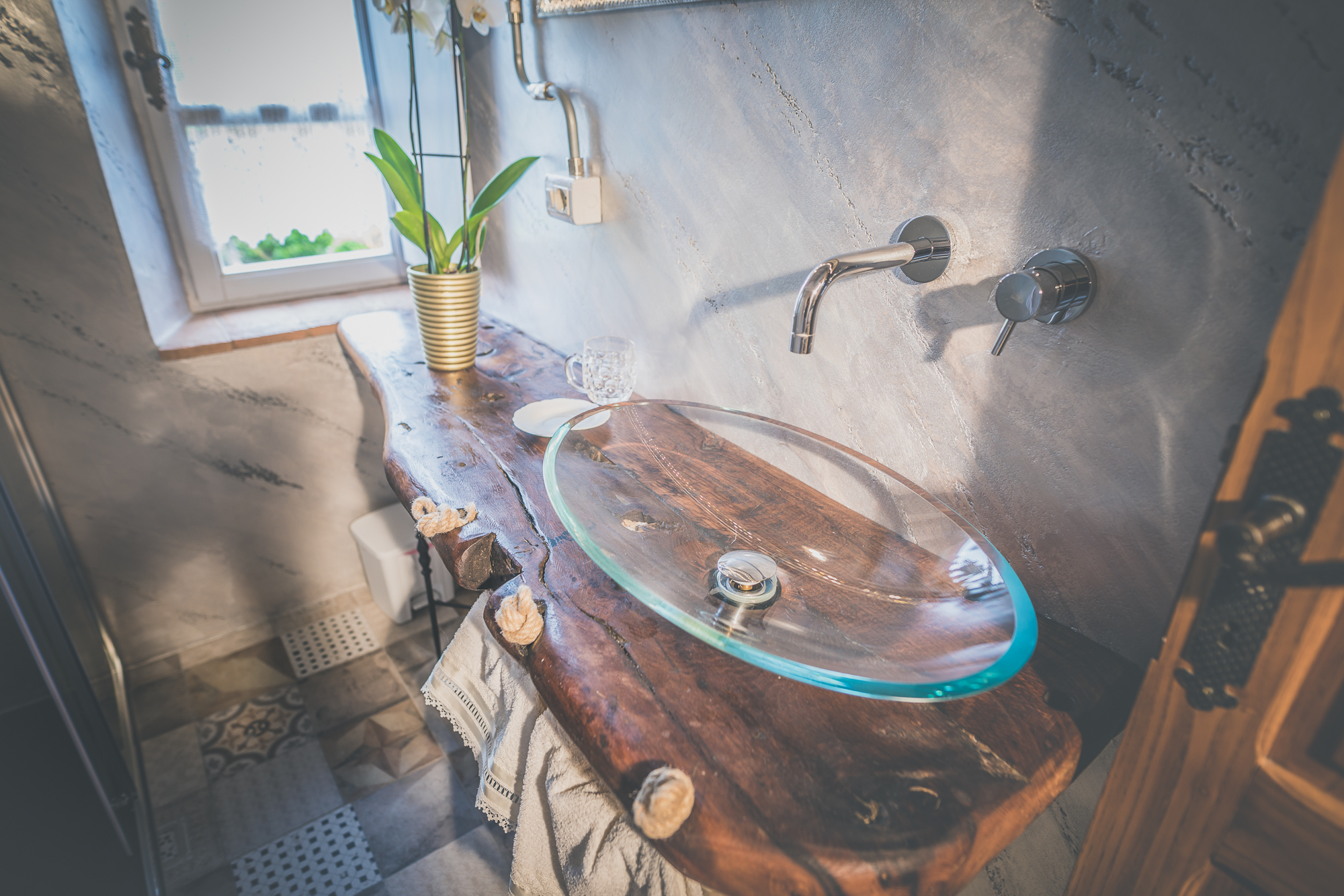 All bedrooms and apartments are furnished with antique furniture and family heirlooms, giving an elegant but homely feel. Steps and surfaces have been created from old wooden troughs, old farm equipment has been transformed into mirrors and pieces of the wine barrels have been made into lamps. Travertine steps have become benches. All the bathrooms are private and have a shower. In the suite there is a bath tub for a relaxing and aromatic soak!