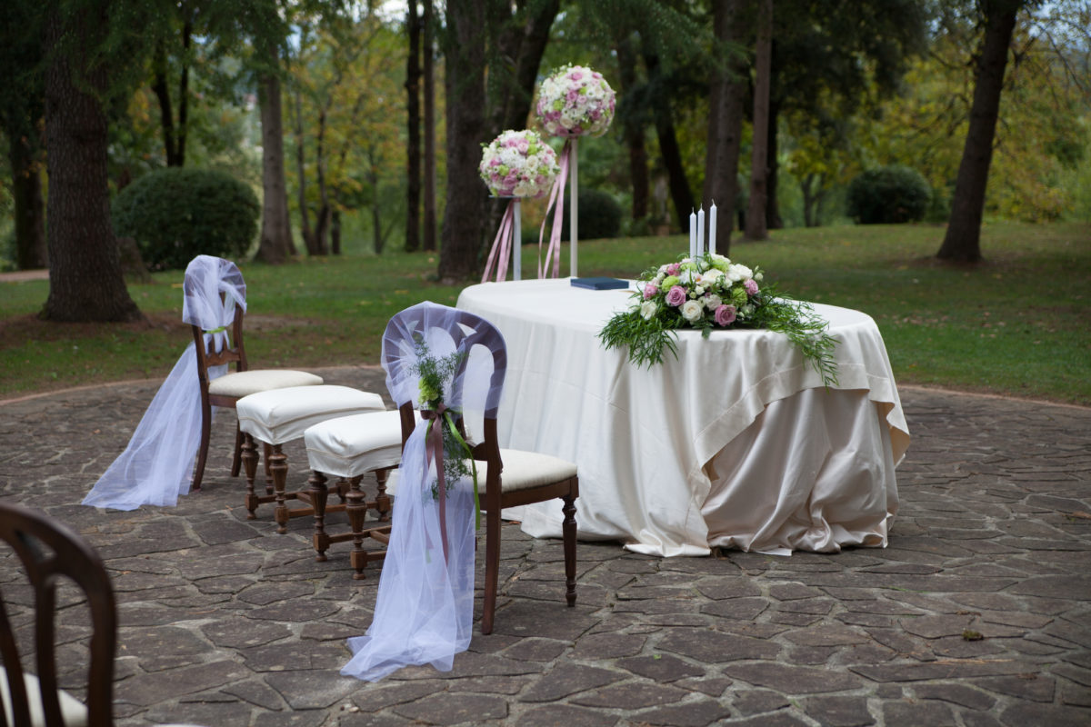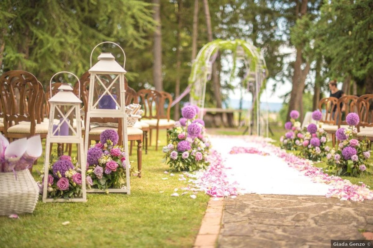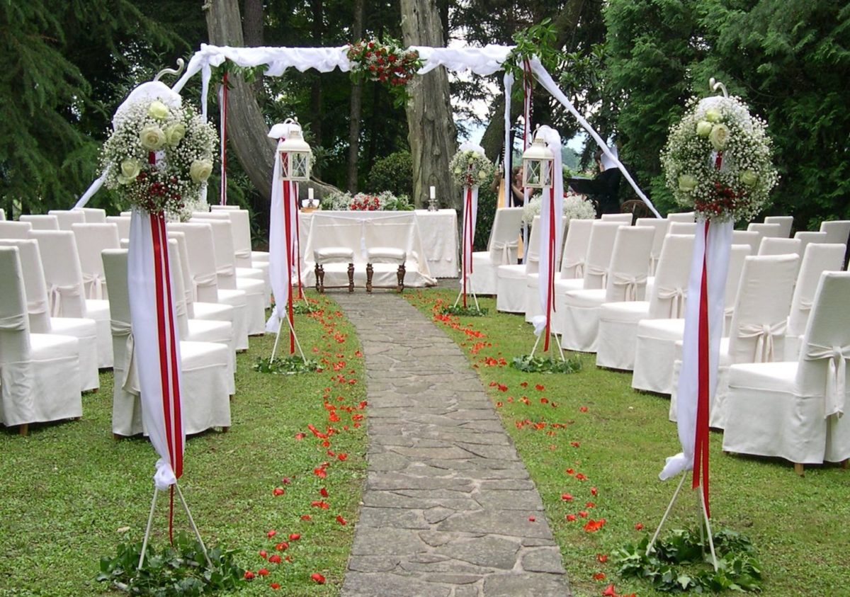 The wedding ceremony, celebrated in the gardens or in the halls.